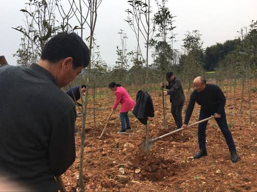 3月9日,ac米兰官网教工党支部在院长石正义的带领下,全体党员整装出发去往咸安区南川村开展义务植树活动,南川村是2016年中央财政林业科技推广资金支持咸宁市桂花栽培标准化示范区建设项目,这里有100亩桂花示范基地,我们一行人在咸宁市林业科学院熊胜华的指导下,有条不紊的给桂花树挖土,扶正,松土,同时清除杂草,顺利的完成了预期任务。