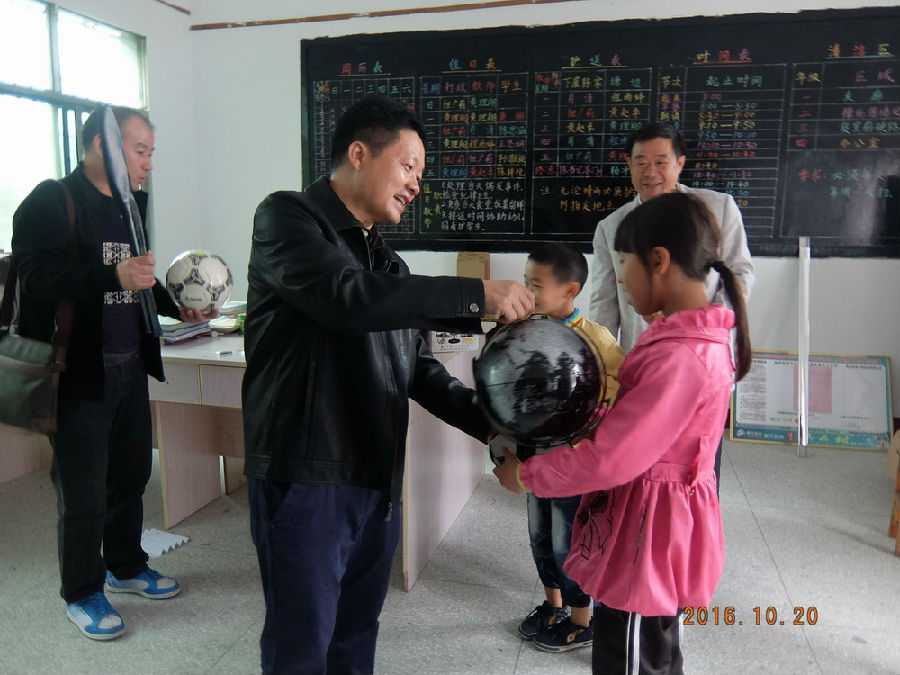 孩子们的健康成长、乡村教育事业的发展是我们最关心的问题。第一书记刘之杨、村支书陈明远、湖科精准扶贫工作队队长张劲松带我们来到位于村委会对面的学校,这个学校有幼儿园两个班,一到四年级四个班。每个班的教学设备都很先进,教室里配有多媒体投影仪和空调。但是,根据我们前期的了解,他们的体育设施、文体用品比较缺少,这次,我们特地给小朋友们带来了排球、篮球、足球、乒乓球拍、乒乓球、羽毛球拍、羽毛球、跳绳、哑铃等体育用品以及地球仪、七巧板等学习娱乐用品,为孩子们的成长、乡村教育事业的发展尽一份我们的绵薄之力。孩子们拿到这些文体用品都非常开心,年轻有为的黄校长对ac米兰官方网站党总支的用心表示了感谢。