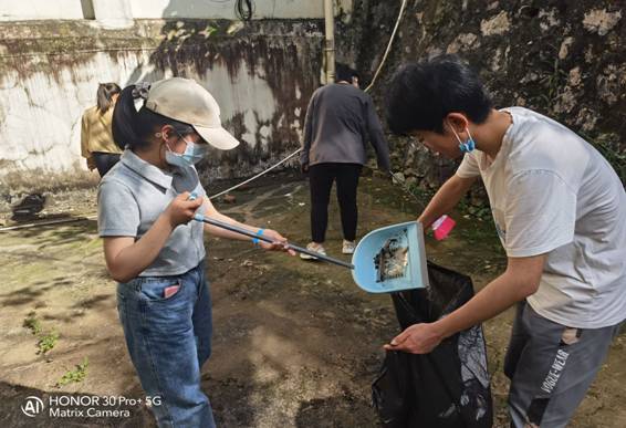 下午三点,全体师生在学校大门口集合,清点人数,分发工具后一起步行到电信小区,本次活动分四个小组进行劳动。一组负责清理家属楼周边的垃圾,二组负责清理小区车库的垃圾,三组负责清理花坛的垃圾,四组负责清理电信大楼周边的垃圾。每组指定组长负责维护秩序以及队员安全。劳动过程中每个人不怕苦,不怕累,相互配合,把小区的路面打扫得干干净净,对楼栋周边的杂草、土渣、烂泥杂物都进行了清理,其中二组负责清理的车库由于废弃了一段时间,打扫工作量很大,蚊虫肆意叮咬,但大家还是克服了困难,圆满地完成了任务。