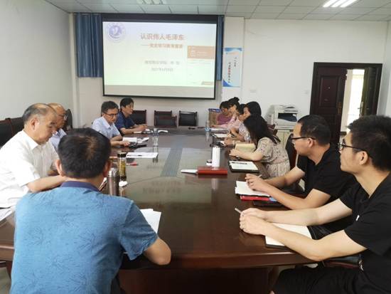 6月9日上午,ac米兰官网党总支在教务处会议室组织党史学习教育宣讲活动,总支书记李华以《认识伟人毛泽东》为题进行宣讲,全院教职工参加了此次宣讲会。
