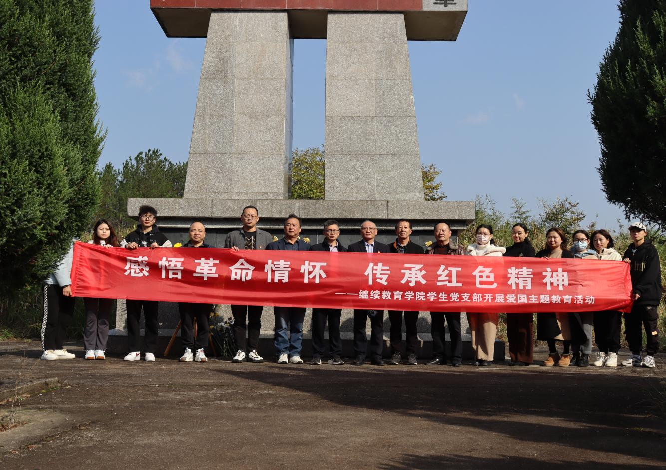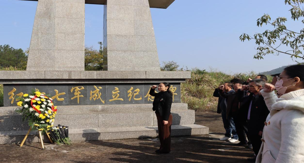 11月16日,ac米兰官方网站学生党支部组织党员和入党积极分子代表赴通山县大畈镇瞻仰红十七军成立纪念碑,开展“感悟革命情怀、传承红色精神”主题党日活动。