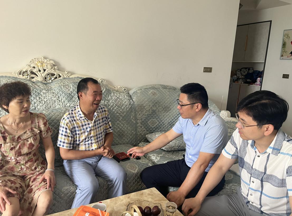 7月1日,金延安带领教工支部书记及党政办主任,携带慰问金和工会会员两节(端午节、中秋节)物资卡,走访慰问困难党员邹绍华。在邹绍华家中,金延安与他进行亲切交谈,详细了解他的健康状况、家庭生活以及目前面临的困难,并鼓励他保持坚强和乐观的态度,积极面对生活中的挑战。