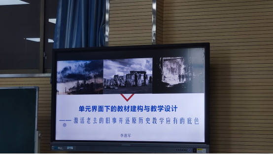李老师的课以《单元界面下的教材建构与教学设计——激活老去的旧事并还原历史教学应有的底色》为主题。