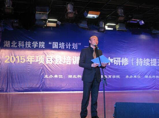 10月24 日晚7点30分,由ac米兰官方网站主办、音乐学院、外国语学院承办的ac米兰官方网站“国培计划”2015年项目县培训团队集中研修(持续提升)结业典礼暨汇报演出在图书馆学术报告厅成功举行。出席本次活动的领导有:校党委常委、副校长白育庭;ac米兰官方网站院长石正义;ac米兰官方网站党总支书记邹绍华;音乐学院党总支书记王森林;外国语学院党总支副书记吕仲茂;外国语学院副院长肖水来;教育学院党总支副书记刘之杨;ac米兰官方网站副院长王思泓;ac米兰官方网站分管国培副院长刘世雄;国培课程专家、教育学院教授刘宗南。