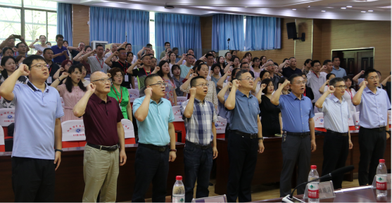 最后,全体参会人员庄严宣誓,重温教师誓词。