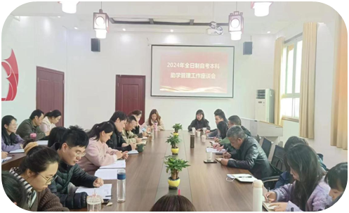 2024年3月25日,ac米兰官方网站召集助学机构负责人及机构全体工作人员就加强自考助学项目规范与发展召开座谈会,院长厉阳春出席座谈会。